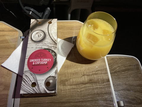 着陸前にチキンホットサンドイッチの軽食が出た