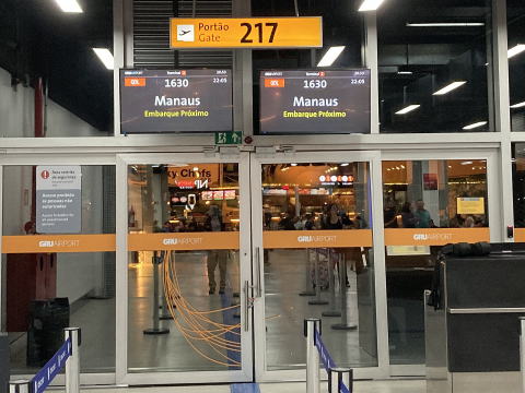 ブラジルへの入国はとてもスムーズだった。預入荷物の受け取りはしばらく待たされたが無事に受け取ることができた。その後は到着ゲートの横にある国内線の乗継カウンターでマナウス便の搭乗手続きを行った。搭乗するGOL航空の窓口が混雑していたので30分ほどかかった。
