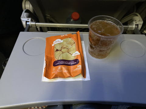 飲み物とスナック菓子がサービスされた