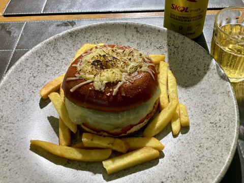 夕方までしっかり昼寝して移動の疲れをとり19時過ぎにホテル内のレストランで夕食をとった。キャンペーンメニューのアンガスビーフバーガーとビールを注文した。分厚いビーフパテとチーズの相性がとても良かった。夕食後はレストランの入口横にあるバーカウンターでカイピリーニャを飲んだ。ブラジルの蒸留酒ピンガとライム、砂糖を使った甘くて爽やかなカクテルだ。一杯飲んで会計しようとしたところ言葉がうまく通じなくて2杯目が出てきてしまった。こうしたハプニングも海外釣行の面白さだ。