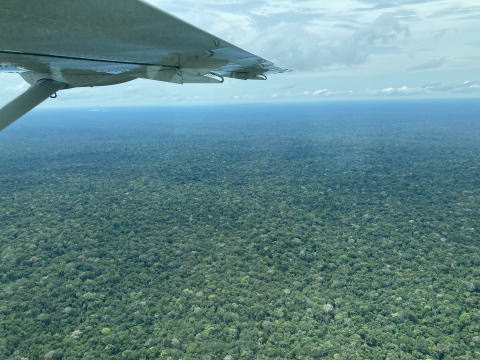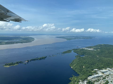 離陸直後はマナウスの市街地やアマゾン川の様子を眼下に見ることができた。水色の異なるネグロ川とソリモンエス川の水が混じらずに流れ下るソリモンエスの奇観と呼ばれる光景を上空から見ることができた。
