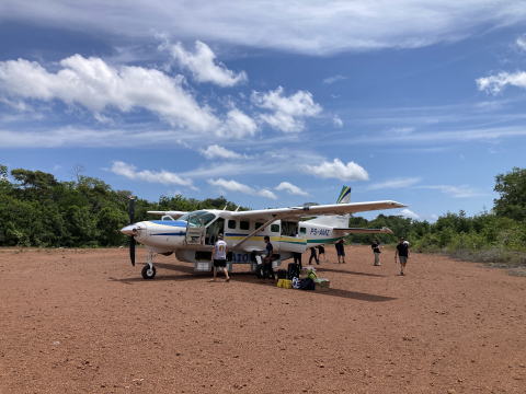 9時30分に滑走路脇に駐機している搭乗機に向かった。9名乗りの小型機だった。我々が搭乗するとすぐに離陸した。