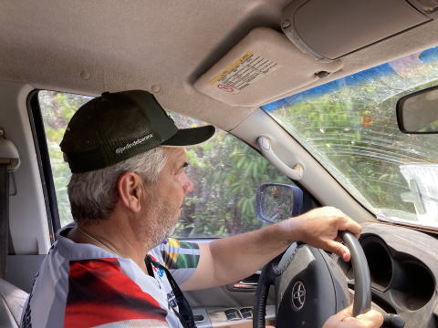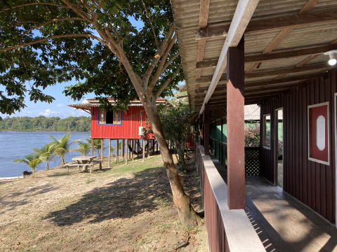 14時にカショエラ・ポルテイラの村を出発して四輪駆動車でロッジに向かった。道はそれなりに整備されているがぬかるみの多い悪路だった。そこをかなりのスピードで走行していった。昨年乗った車はエアコンがなく開けた窓から木の枝が入ってきたりして大変だったが、今年の車はエアコンがあったので快適だった。16時過ぎにロッジに着いた。顔なじみのマネージャーが出迎えてくれた。