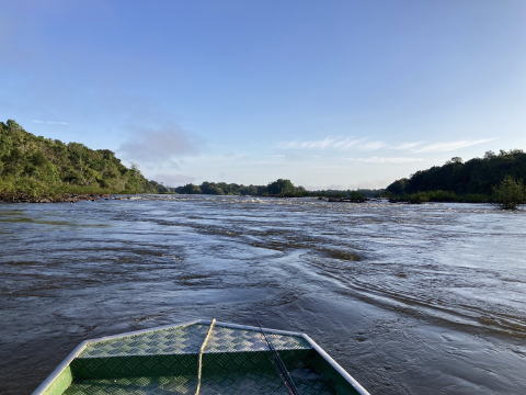 7時20分頃担当のガイドがボートで迎えに来て釣りに出発した。担当ガイドはビリュー。昨年も世話になったベテランガイドだ。ポルトガル語しか話せないので意思の疎通は難しいが釣り場を熟知しているとても頼りになるガイドだ。彼が担当ガイドでとても嬉しかった。彼も担当ゲストが知った人物でどことなく嬉しそうだった。