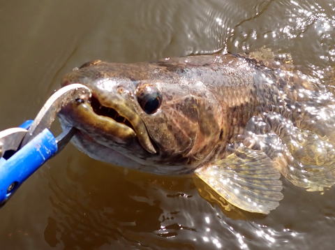 その後ナマズ釣りの竿にもアタリがあった。だがかかっていたのはナマズではなく淡水エイだった。淡水エイは尾鰭に毒針がある。かわいそうだが尾鰭を切断してからボートに上げて針を外してリリースした。その後16時までナマズ釣りをしたが本命のナマズは釣れなかった。