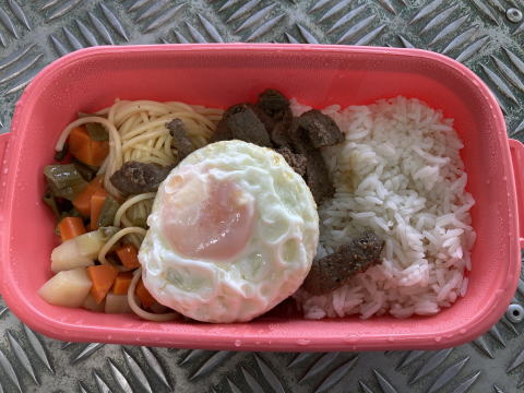 目玉焼きの下にはカットステーキがたくさん入っていた