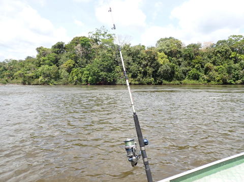 ここではその日どのような釣りをしたいかガイドにリクエストすることができる。この日は午前中はツクナレとタライロンのルアーフィッシング、午後はナマズの餌釣りとツクナレのルアーフィッシングがしたいとリクエストした。ボートを全速力で走らせて上流に向かった。