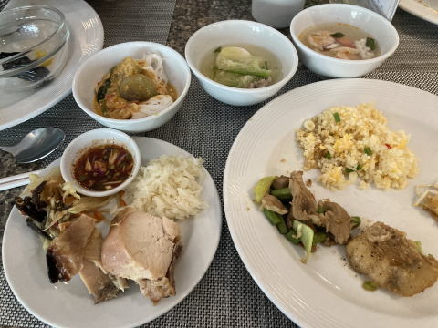 2か所の寺院の見学を終えたのは11時20分だった。アユタヤでは寺院遺跡をもう一か所見学する予定だったが先に昼食をとることになった。パーサック川沿いのクルンシーリバーホテルのレストランでタイ料理のビュッフェを食べた。今回の旅行では何回かビュッフェランチを食べたが僕はここの料理が一番おいしかった。味付けが現地風で辛さや甘さがはっきりしていたからだろう。
