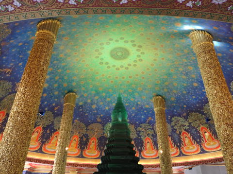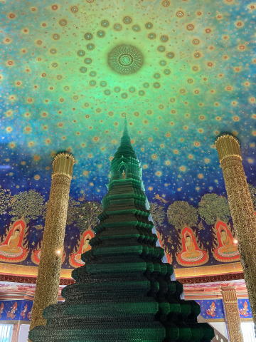 続いて徒歩でワットパクナムに移動した。ワットパクナムはワットクンチャンの運河を挟んだ反対側にあった。こちらは金色の大仏と白い仏塔が特徴的な寺院だった。大仏の高さは69mもあるとても大きなものだった。80mの高さを誇る仏塔の最上階にはとても美しい空間が広がっていた。