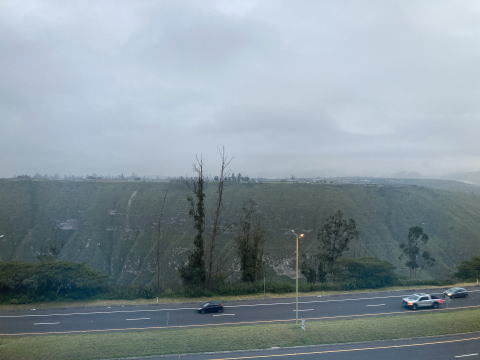 空港の滑走路が見えるはずだったが靄がかかっていた