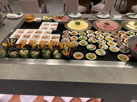 ビュッフェスタイルでおいしそうな料理が並んでいた