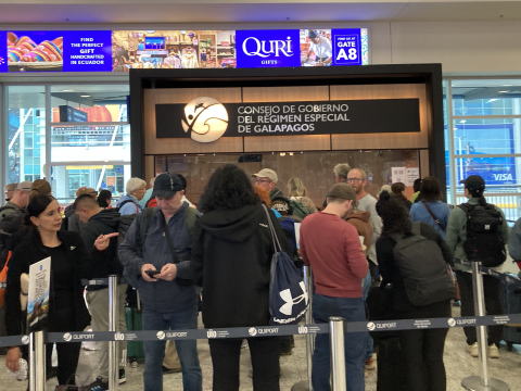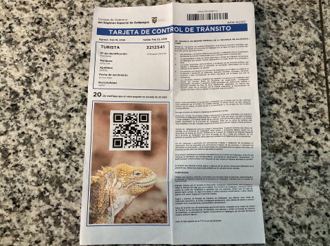 ガラパゴス諸島へのフライトは他のフライトとチェックインの手続きが異なっている。まず入島許可証を発行するカウンターに並び、事前申請したT C Tを窓口で提示して入島許可証を発行してもらった。