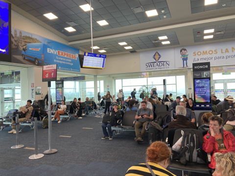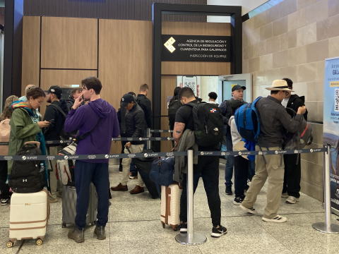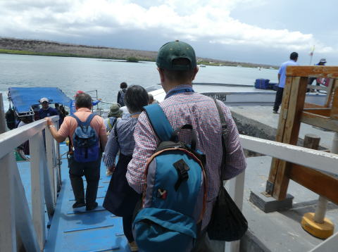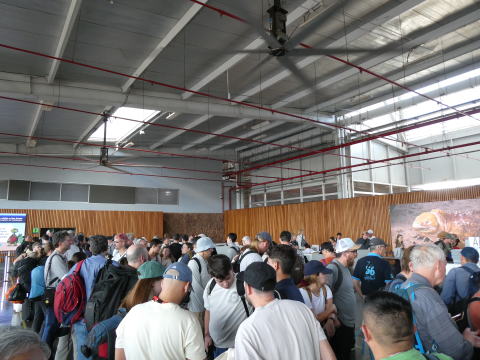 ターミナルの建物に入ると長い列ができていた。入島手続きの行列だった。自分たちの番になるまでに40分ほどかかった。まず入島許可証を提示して確認を受け、その後入島税を現金で支払った。金額は200ドル。安い額ではないがガラパゴス諸島の自然環境を維持するために使われるものだと思うと納得できる金額だ。最後の手荷物チェックを受けて手続きは完了した。