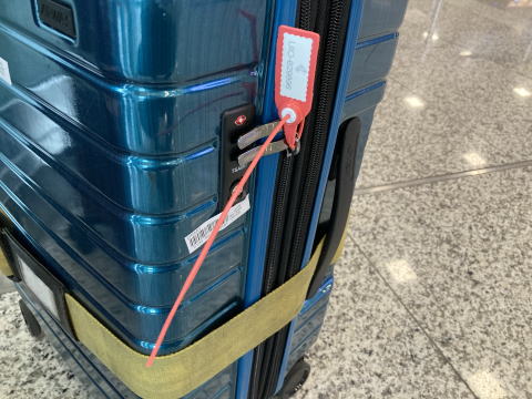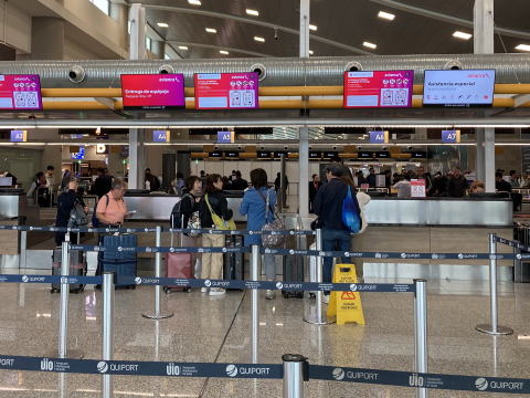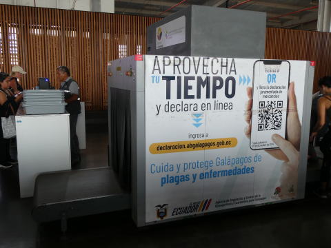 次にガラパゴス諸島に持ち込む荷物のチェックを受けた。ガラパゴス諸島は動植物類の持ち込みが禁止されている。専用のカウンターで預け入れ荷物の確認を受けた。チェックが終わった荷物は確認済みを証明するタグで封印された。