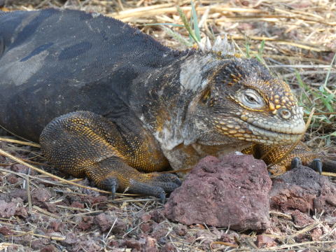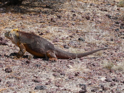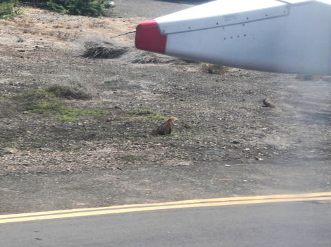 着陸後、駐機スペースまで移動している飛行機の窓から外を見ていると滑走路の脇にリクイグアナがいた。ガラパゴスに着いたことを実感した。