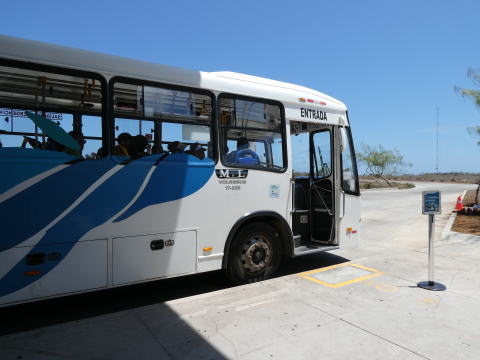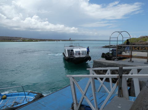 我々も空港から乗合バスで船着き場まで移動した。バルトラ島は平坦な島だった。道の両脇にはガラパゴス諸島の固有種であるパロサントの木が生えていた。10分ほどで港に到着した。