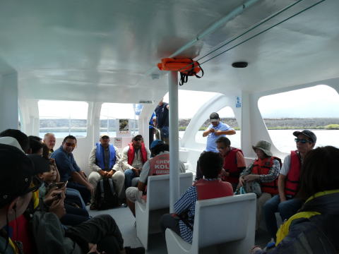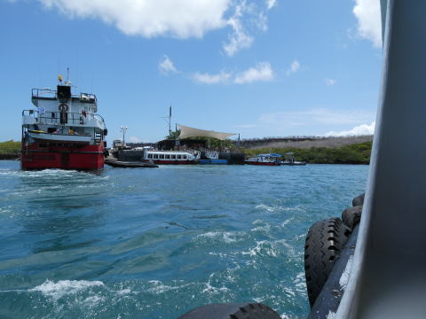 対岸からやってきたフェリーに乗り込んで海峡を渡った。5分ほどサンタクルス島のイタバカ港に着いた。