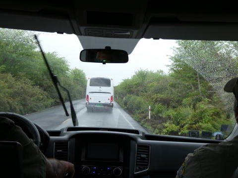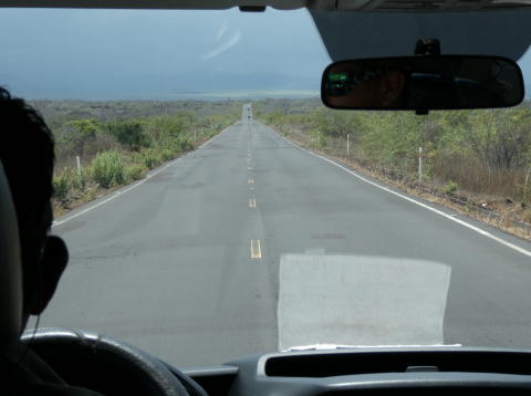 サンタクルス島北部のイタバカ港と南部のプエルトアヨラの街を結ぶ幹線道路を南下した。ハイランドエリアまでは登り坂が続いた。高度が上がるにつれて天気が悪くなり雨が降り出した。幹線道路を外れて農場へ向かう道に入る頃には土砂降りになった。