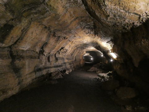 農場でゾウガメを観察した後は農場近くの溶岩トンネルを見学した。ガラパゴス諸島の島々は火山活動によって誕生したものだ。火山噴火時に噴火口から流れ出た粘り気の低い溶岩が形成した巨大なトンネルの内部を見学した。火山活動の凄まじさの一端を実感することができた。溶岩トンネルの入り口の近くではガラパゴスメンフクロウの姿をカメラに収めることができた。