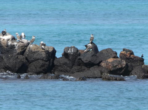 岩場にアオアシカツオドリがいた