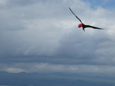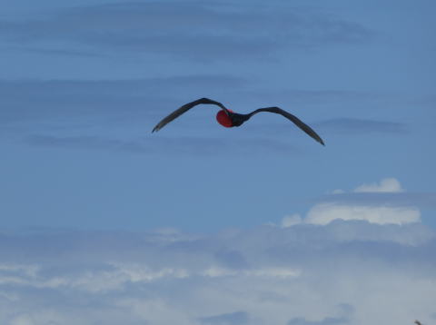 上空を喉袋を広げたままのグンカンドリが飛んでいた