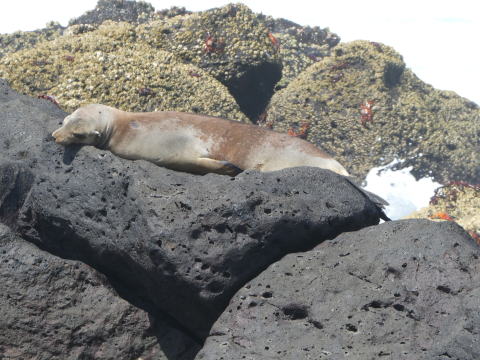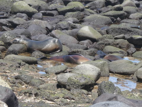この島には海鳥以外にも多くの生き物がいた。海岸に目をやるとアシカやウミイグアナの姿を見つけることができた。