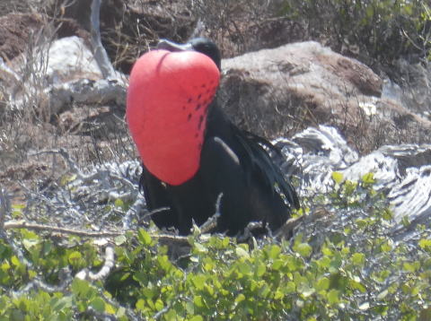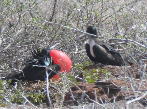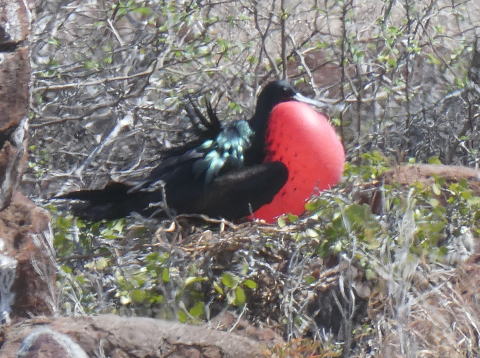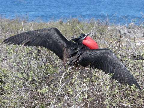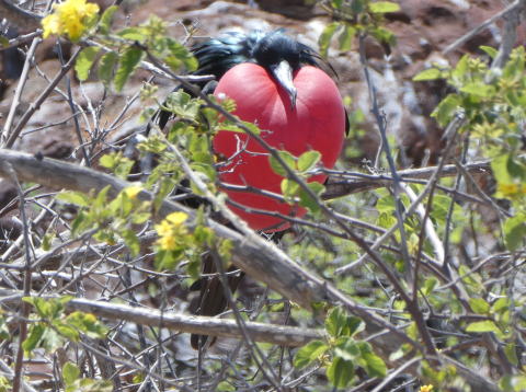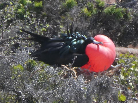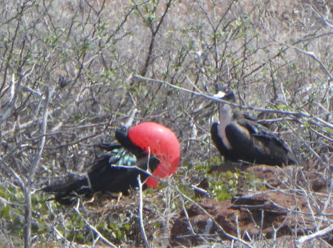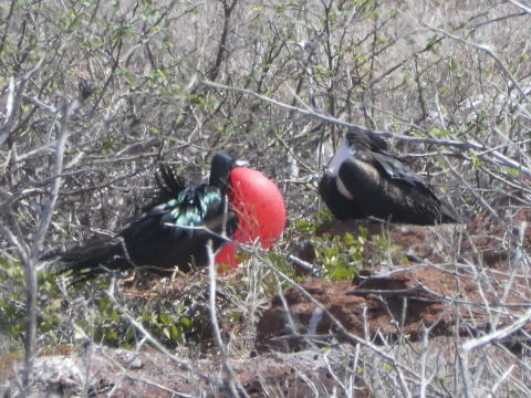 ノースセイモア島は海鳥の営巣地になっている。この時期はグンカンドリの繁殖期だ。雄のグンカンドリが赤い喉袋を広げて雌に求愛する様子を見ることができる絶好機だった。