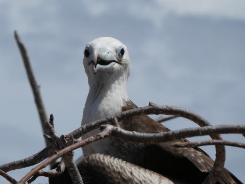 本来ならノースセイモア島にはもっと多くのアオアシカツオドリがいるはずだったが繁殖期を迎えたグンカンドリの数が多くて追いやられてしまったようだった。夢中でシャッターを切って写真をたくさん撮影した。