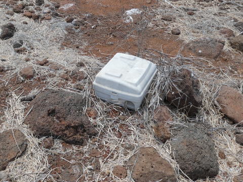 トレイルの脇にネズミを捕るトラップが置かれていた