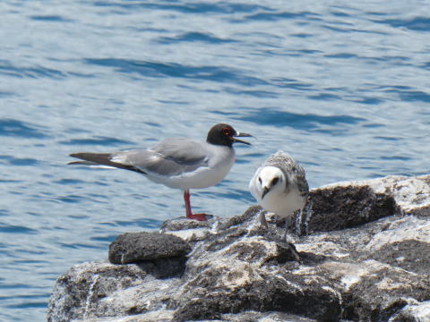 岩場にはアカメカモメの親子がいた