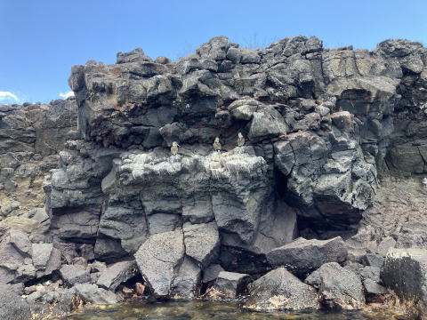 海岸の崖にアオアシカツオドリがいた