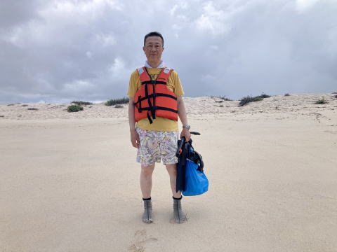 移動先のビーチでシュノーケリングを始めた。前日の海は透明度が高かったがこの日は波が巻き上げた砂で視界がほとんどなかった。そのため生き物の姿を見ることができなかった。早々とシュノーケリングを諦めて陸に上がった。
