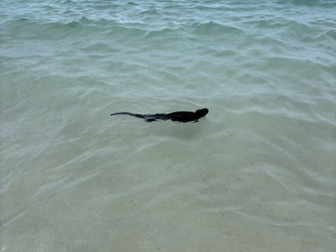 そんな時、波打ち際を泳ぐ黒い生き物が目に入った。ウミイグアナだ。長い尾を使ってゆっくりと泳いでいた。思いがけずウミイグアナの遊泳シーンを観察することができてラッキーだった。