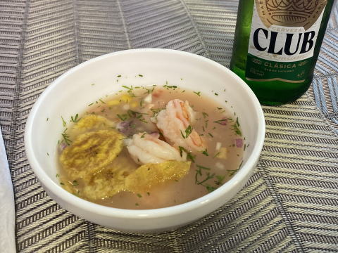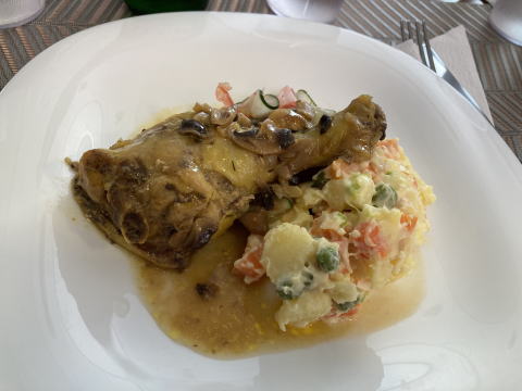 クルーザーに戻ると昼食の準備が整っていた。前菜の海老のセビーチェもメインの骨付きチキンのソテーもおいしかった。