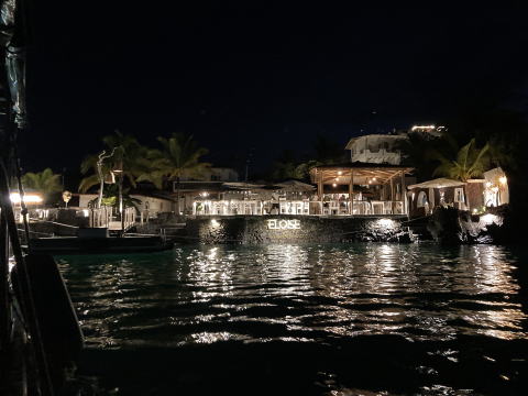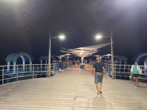 この日の夕食は海辺のレストランでとった。陸路がなくボートでしか行けない店だった。19時にホテルを出てホテルの近くの船着き場まで歩いた。そこでボートタクシーに乗ってレストランまで移動した。5分ほどでレストランの船着き場に着いた。夜だったので景色は楽しめなかったがおしゃれなレストランだった。