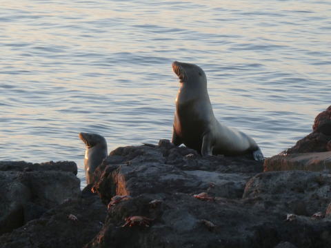この日はホテルを9時45分に出発する予定だった。朝はゆっくり寝ているという選択肢もあったが前日までと同様に6時前に起きて日の出を見に海岸に行った。アシカと一緒に太陽が海から昇ってくるのを眺めた。