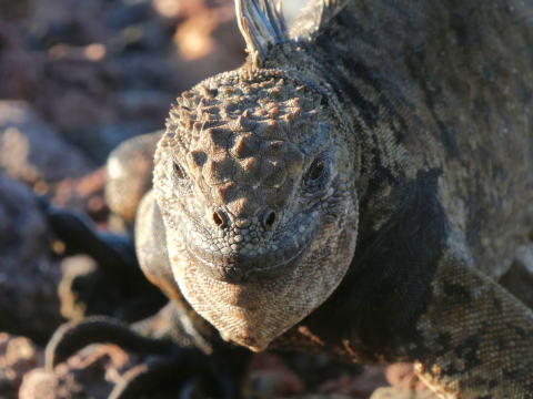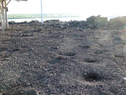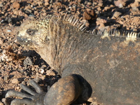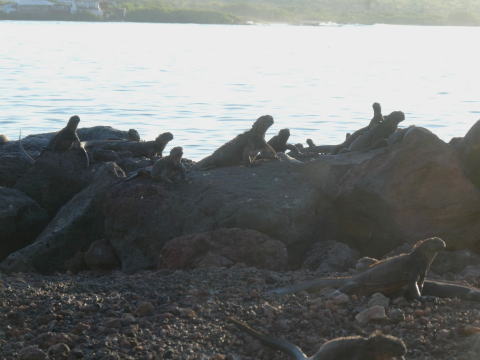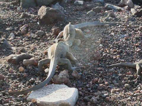 その後魚市場まで散歩した。この日も魚を捌く漁師がいなかったので鳥たちの姿は少なかった。そこでホテル近くの海岸に引き返してウミイグアナたちをゆっくり観察した。ウミイグアナたちもそろそろ繁殖期だ。気の早い雄が雌に交尾を迫っていたがことごとく拒まれていた。雄同士で争う様子も見ることができた。普段はおとなしいウミイグアナも繁殖期になると気が立ってくるようだ。