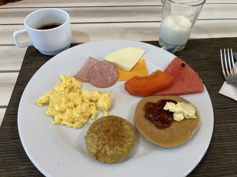 7時30分から朝食をとった。前日までは船酔いを警戒して軽めにしていたがこの日はしっかり食べた。食後は土産を買いに出かけたりして過ごした。