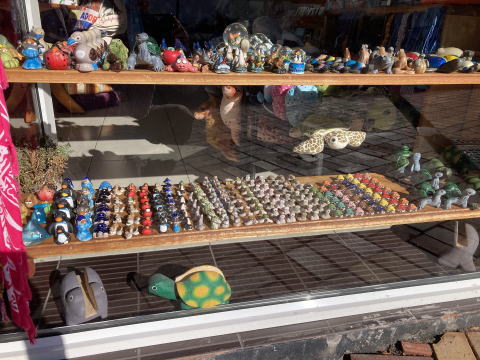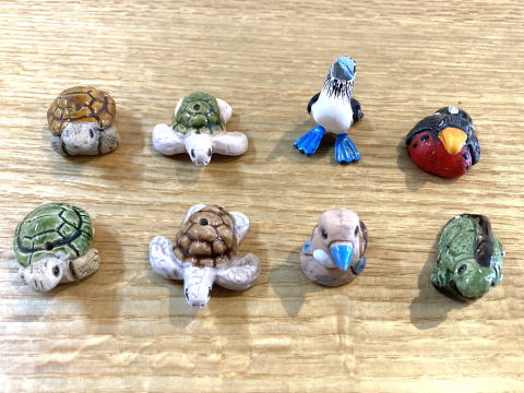 店頭に並ぶガラパゴスの生き物たちのフィギュア