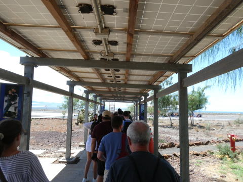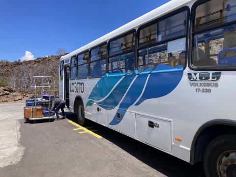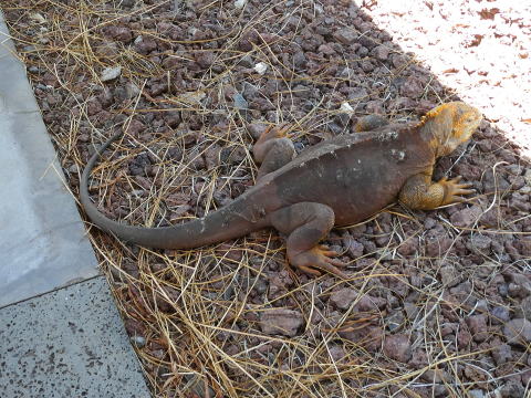 イタバカ港でフェリーに乗ってバルトラ島に渡った。船着き場からは乗り合いバスで空港まで移動した。11時過ぎに空港に着いた。建物の前でリクイグアナが出迎えてくれた。