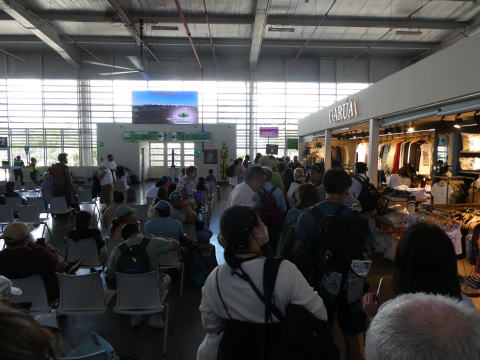 チェックインと荷物預けを済ませて搭乗ロビーに移動した。入島時は手続きが煩雑だったが帰路は通常の搭乗手続きだけだった。
