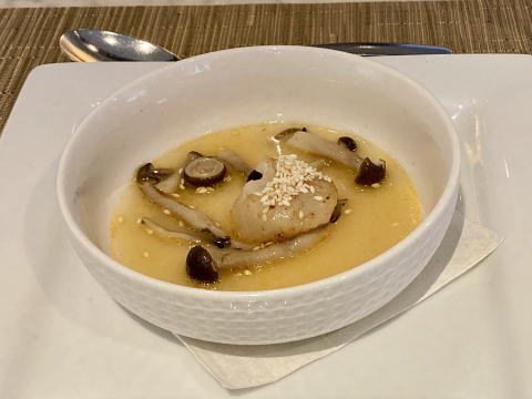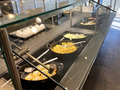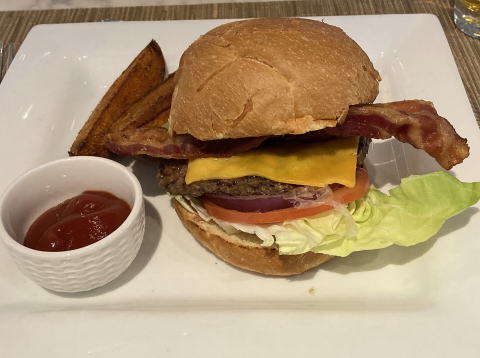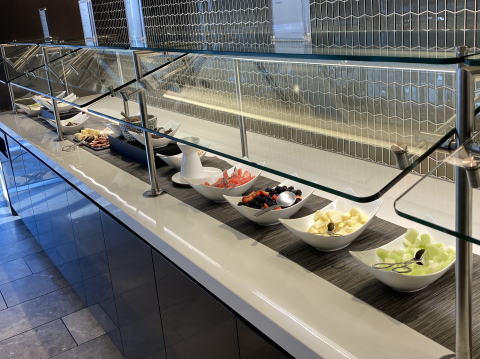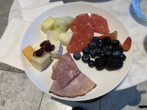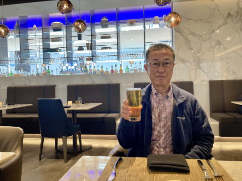 昼食はラウンジ内のレストランでとった。ホタテの前菜にメインのハンバーガー、チョコレートムースをデザートにつけたコースランチを食べた。味もサービスも申し分なかった。その後15時近くまでラウンジで過ごした。このラウンジのおかげで10時間超の待ち時間をかなり快適に過ごすことができた。