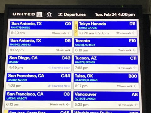 が、ここで悪いニュースが飛び込んできた。羽田からヒューストンに向かう便が機材トラブルで羽田に引き返し機材を変更して再出発したので到着が7時間遅れるという知らせだ。出発も7時間遅れの17時過ぎになることが想定された。待ち時間が長くなって面倒な気分になったが同時に欠航にならなくてよかったとも思った。