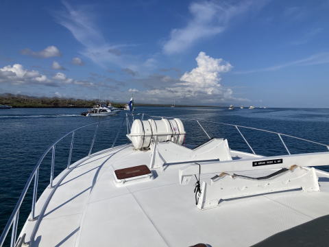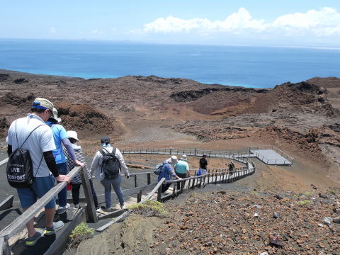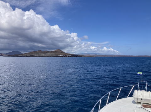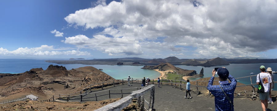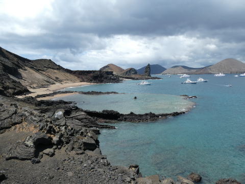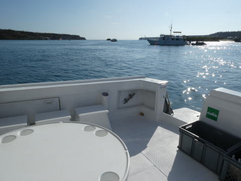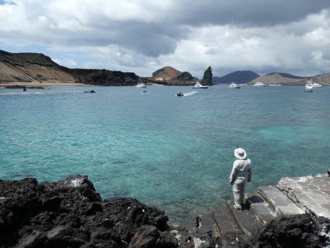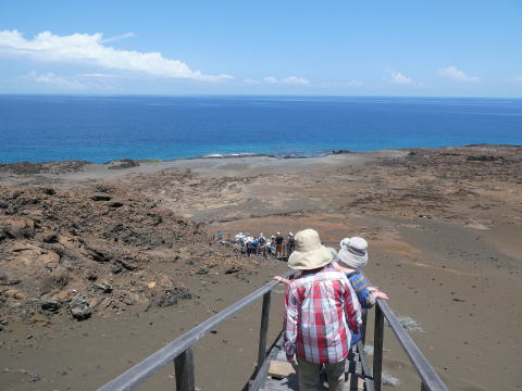 8時過ぎに出港してバルトロメ島を目指した。バルトロメ島はサンタクルス島の西方に位置するサンティアゴ(サンサルバドル)島の東岸にある小島だ。30万年前の噴火で出来たガラパゴス諸島の島の中では若い島で、火山噴出物で形成された地質と独特の景観が特徴的な島だ。