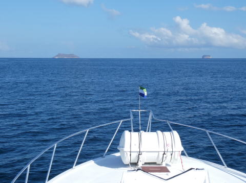 遠くに大ダフネ島(左)と小ダフネ島(右)が見えてきた