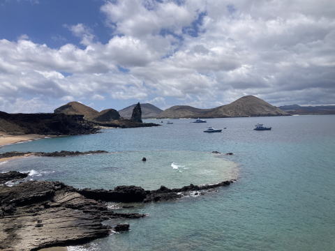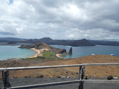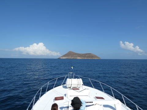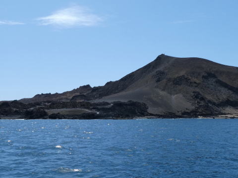 波が穏やかで快適なクルーズだった。船酔いが心配だったので念のため酔い止め薬を飲んで乗船したがそんな必要は全くないほどの穏やかな航海だった。やがてサンティアゴ島の手前にバルトロメ島が見えてきた。
