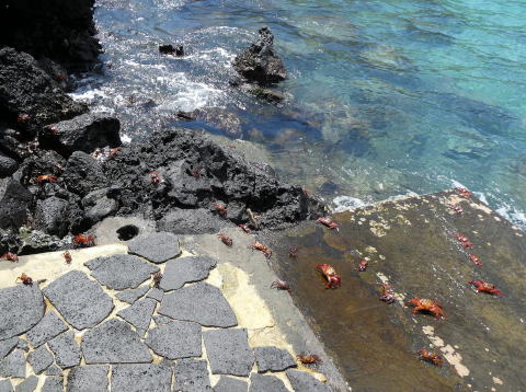 桟橋にはガラパゴスベニイワガニがたくさんいた
