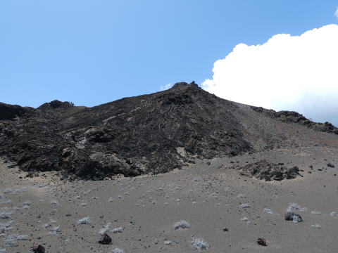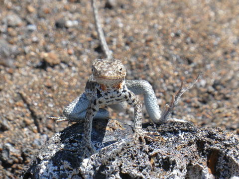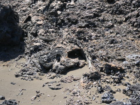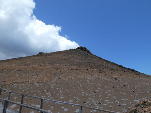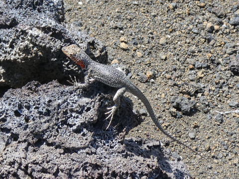 板張りのトレイルを進んで高さ115mの頂上部を目指した。時折足元にヨウガントカゲが姿を見せた。愛くるしいトカゲだった。トレイルからは様々な火山噴出物や小規模な溶岩トンネルが観察できた。ヨウガンサボテンも見ることができた。