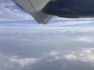 搭乗機は6時20分にカトマンズのトリブバン空港を離陸した。離陸直後はトリブバン空港やボダナートが眼下に見えた。その後はしばらく雲の中を上昇していった。