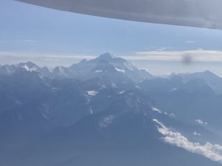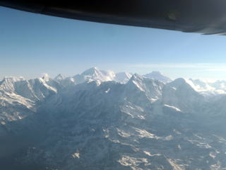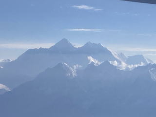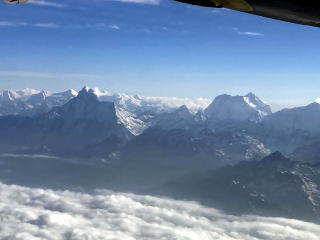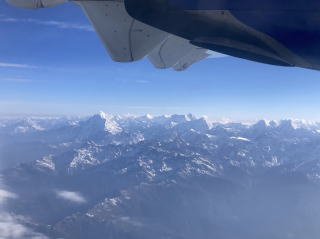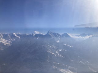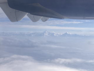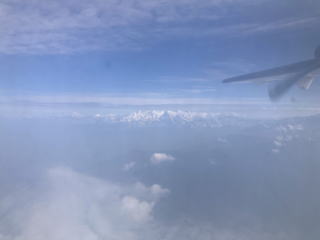 10分ほどで雲の上に出た。ヒマラヤの山々が見え始めた。キャビンアテンダントが山の名前が書かれた冊子を渡してくれた。飛行機が山脈に徐々に近づいていくので次第に山々がはっきり見えるようになってきた。